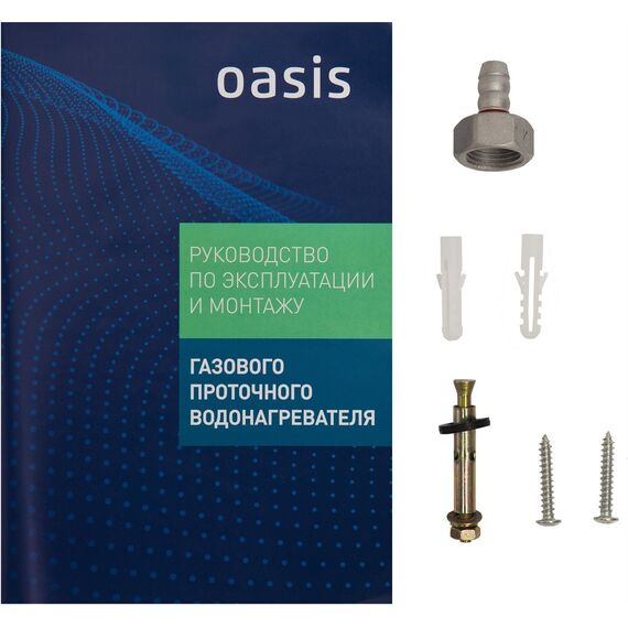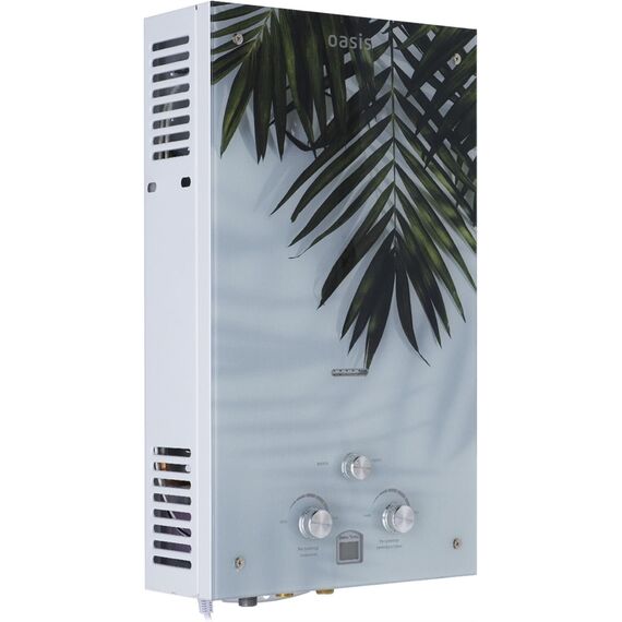 005 Газовый проточный водонагреватель"Oasis" серия Glass 20 LG; Тип газа Природный газ; Номинальное давление газа, Па 1300; Номинальный расход газа м³/час 2; Номинальная тепловая мощность, кВт 20; Номинальная теплопроизводительность, кВт 18; Давление воды, МПа 0,02-0,7; Номинальная емкость при нагреве на ΔТ =25°С, л/мин 10; Зажигание Автоматическое электронное; Питание Постоянный ток, батарейки 3 В; Диаметр дымохода, мм 110; Габаритные размеры, мм (ВхШхГ] 590х340х145; Вес нетто, кг 9,2