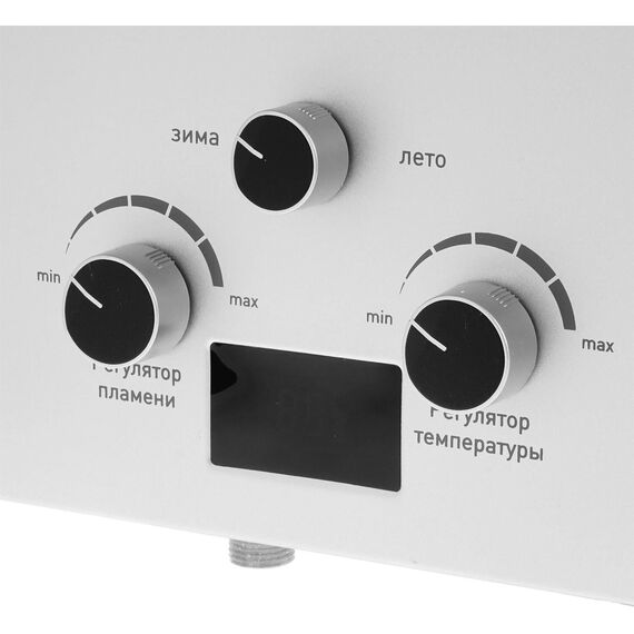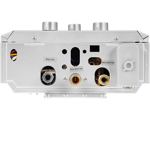 водонагреватель газовый накопительный, прямое подключение в газопровод, баллон со сжиженным газом (опционально), серебристый, Материал корпуса сталь, Тип камеры сгорания закрытая, Макс давление воды 6 атм, Минимальное давление воды 0.2 атм, Индикация температуры, Расход природного газа 1.2 м /ч, Максимальное давление газа 20 мбар, Минимальное давление газа 13 мбар, Производительность 6 л/мин, Номинальная мощность 12 кВт, Напряжение питания 3 В, Модель потребления от батарейки, Управление электронное, Розжиг автоматический, Индикация включения, Подключение системы дымоудаления 90 мм, Способ установки настенный, дисплей, термометр, переключатель мощности "зима/лето", Габариты 30х44х12см, вес 4,7кг