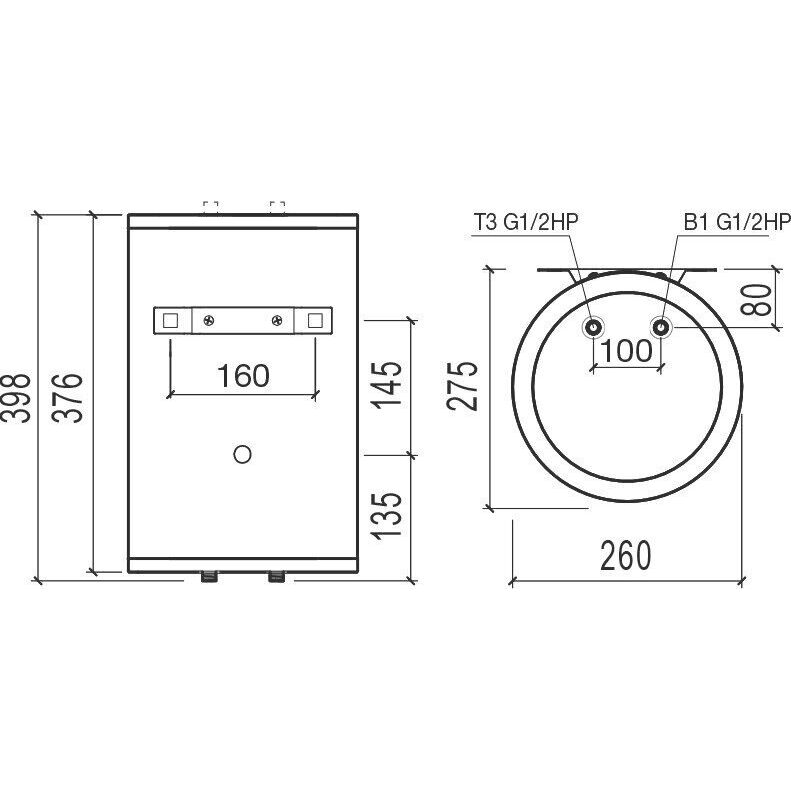 Форм-фактор Мини Литраж, л 10 Способ нагрева электрический Макс. мощность электрическая, Вт 2000 Режимы мощности электрической, Вт 2000 Напряжение сети, В 230 Подключение к стандартной розетке Установка вертикальная Подводка нижняя Способ крепления настенный Тип управления механическое Количество внутренних баков 1 Материал внутреннего бака нержавеющая сталь Материал нагревательного элемента медь Количество анодов 1 Количество нагревательных элементов 1 Время нагрева на t 45° при макс. мощности, мин. 16 Постоянные суточные потери, кВт ч/сут0.56 Фактическое годовое потребление эл. энергии, кВт ч204.4 Макс. давление воды, МПа 0.7 Мин. давление воды, МПа 0.05 Макс. температура нагрева воды, °С 93 Присоединительный размер G1/2 Тип электрического нагревательного элемента трубчатый Точки водоразбора несколько Класс IP IPX4 УЗО лапан Предохранительный Диапазон регулировки температуры, °С+18…+74°С Индикация включения Высота, мм 398 Глубина, мм 270 Ширина, мм 260 Вес, кг 5.6