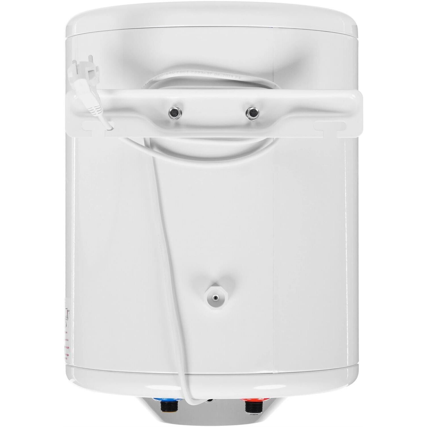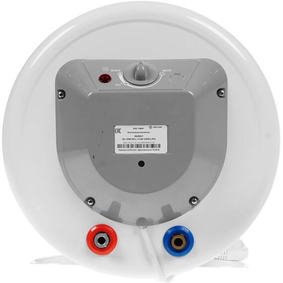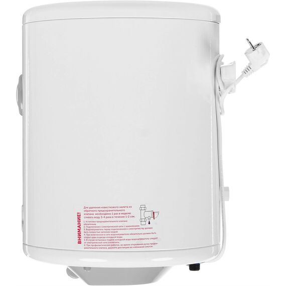 Система поддержания температуры Световая индикация включения и подогрева. Система полной безопасности СПС безопасности. Антикоррозийный магниевый анод. Предохранительный клапан. Слой теплоизоляции, снижающий тепло- и энергопотери. Внутренний бак эмалированной бактерицидной стеклоэмалью. Внешний регулятор температуры. Комплектация: Электрический кабель с вилкой. Анкерные болты с гайкой. Предохранительный клапан. Техническое описание: Цвет - белый. Мощность - 1,5 кВт. Объём, л - 30. Размеры, мм - высота/диаметр – 490/360. Вес, кг - 14.