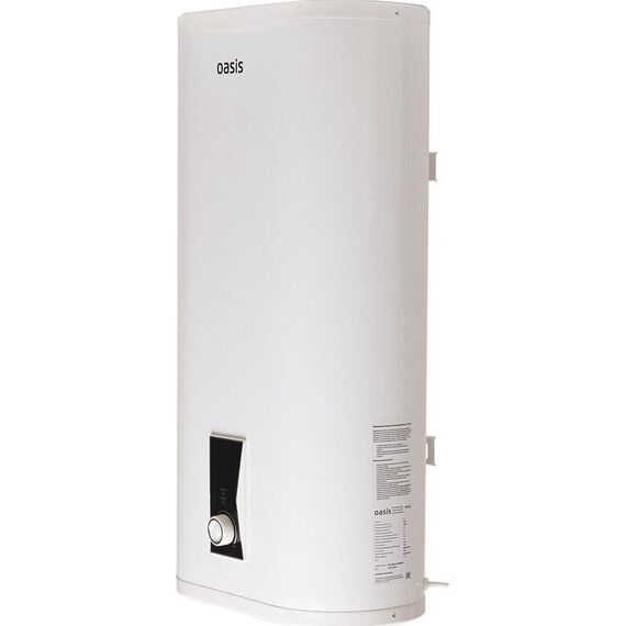 OASIS Электрический накопительный водонагреватель, плоская форма, бак из нержавеющей стали. Объем, л 50 Номинальная мощность, Вт 2000 Параметры электросети, В/Гц 220/50 Номинальная сила тока, А 9,1 Номинальное давление, МПа 0,7 Толщина теплоизоляционного слоя, мм 20 Толщина стенок внутреннего бака, мм 0,8 Теплопроизводительность, % 95 Степень защиты IPX4 Номинальная температура нагрева воды 75°С Тип установки Вертикальный Защита от электрического тока УЗО Размер изделия, см 82,5 43,5 23,5 Вес нетто, кг 10,5