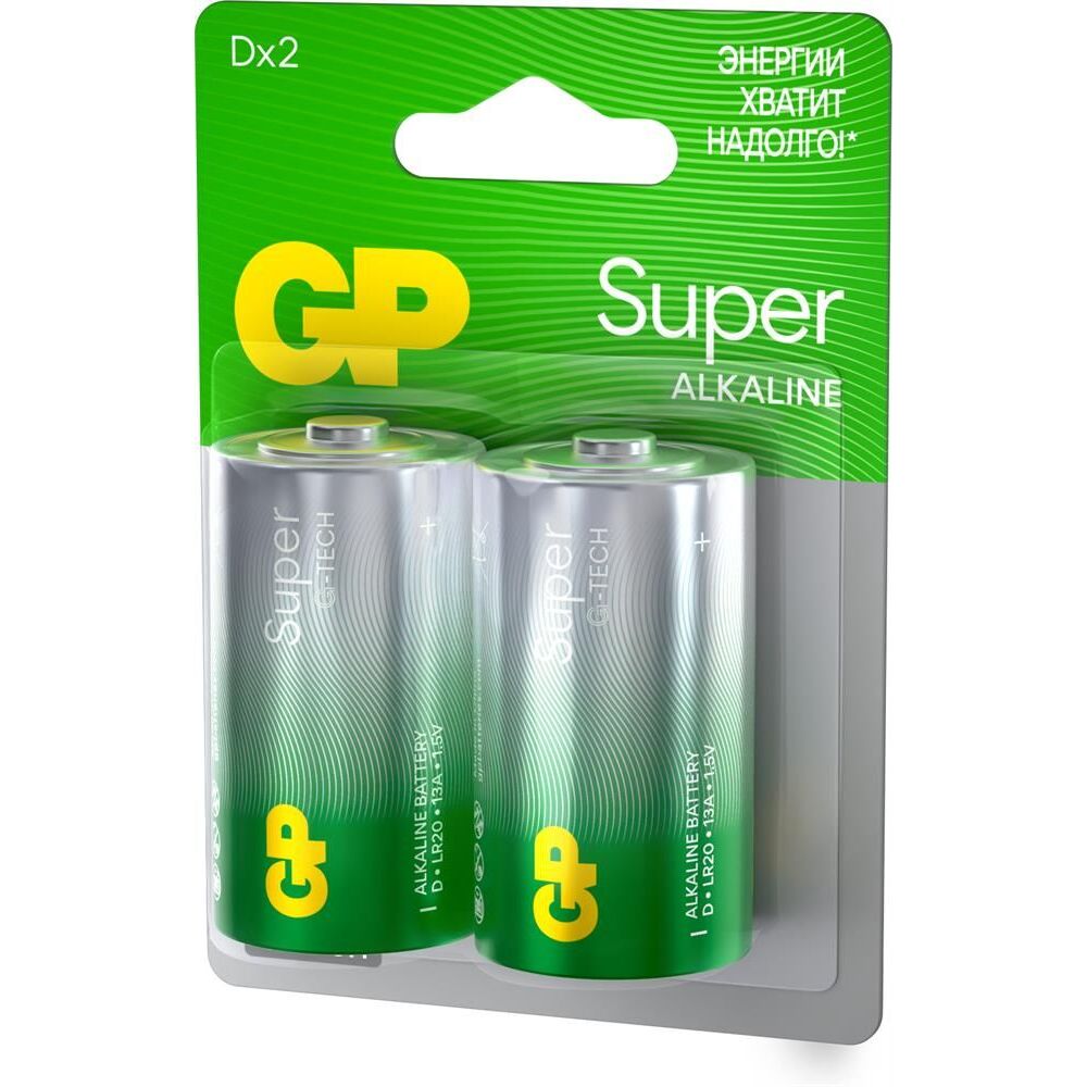 Алкалиновые батарейки GP Super Alkaline G-Tech 13А типоразмера D - 2 шт. на блистере