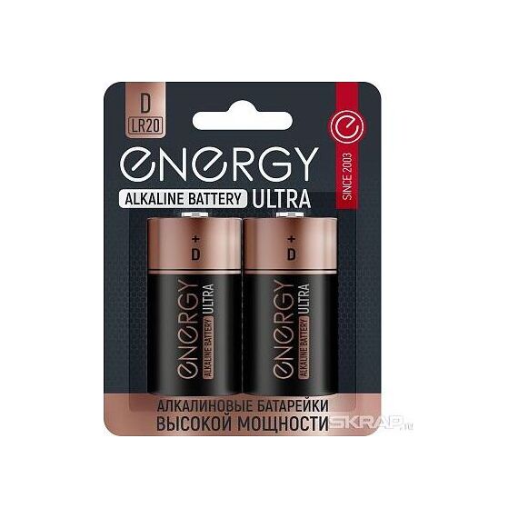 Батарейка алкалиновая ENERGY Ultra LR20/2B (D) 104983