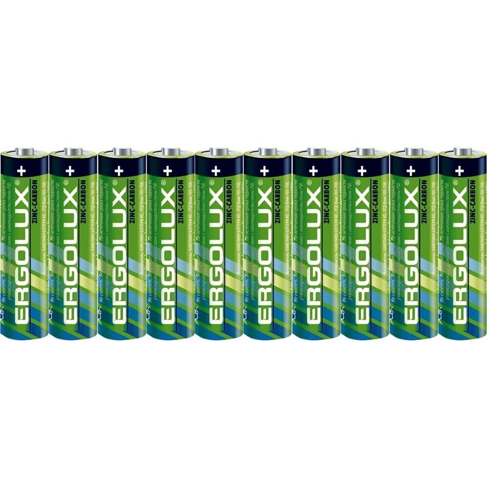 Солевые батарейки , AA (R6;LR6;FR6) ,предназначены для устройств с низким энергопотреблением (настенные часы, пульты дистанционного управления, простые игрушки, фонари). Батарейка Ergolux R6 SR10, напряжение 1,5В, емкость 1200мА*ч, кол-во в упаковке 10 шт., использовать при температуре от -10 до + 40 °C. Срок хранения 3 года.