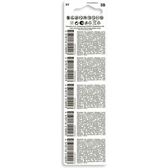 Батарейка СТАРТ CR2016-BL5 100/2000 СТАРТ (18270) CR2016-BL5