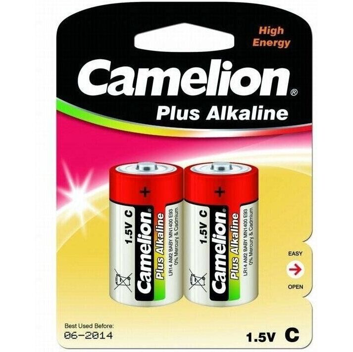Батарейки алкалиновые CAMELION LR14 PLUS ALKALINE BL-2 (LR14-BP2, батарейка,1.5В) Батарейка Camelion LR14-BP2, напряжение 1,5В, емкость 8000 мА*ч, кол-во в упаковке 2 шт., размер упаковки 84x114x27 мм, использовать при температуре от -18 до + 55 °C, хранить в сухом помещении при температуре от +15 до +25°C. Срок хранения 10 лет.