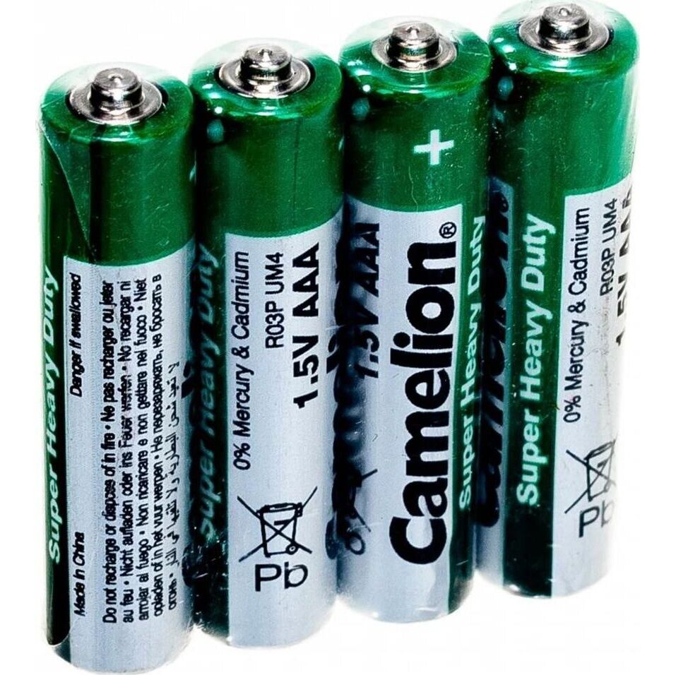 Батарейки солевые R03P-SP4G, напряжение 1,5В, емкость 550мА*ч, кол-во в упаковке 4 шт., размер упаковки 40x44,5x10 мм, использовать при температуре от -18 до + 55 °C, хранить в сухом помещении при температуре от +15 до +25°C. Срок хранения 3 года.