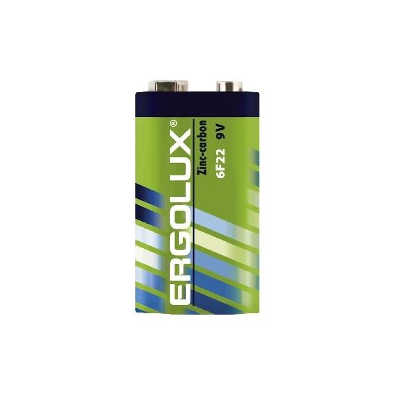 Батарейка Ergolux 6F22 SR1 (6F22SR1), напряжение 9В, емкость 450мА*ч, кол-во в упаковке 1 шт., размер упаковки 25,5x48,5x17,5 мм, использовать при температуре от -10 до + 40 °C