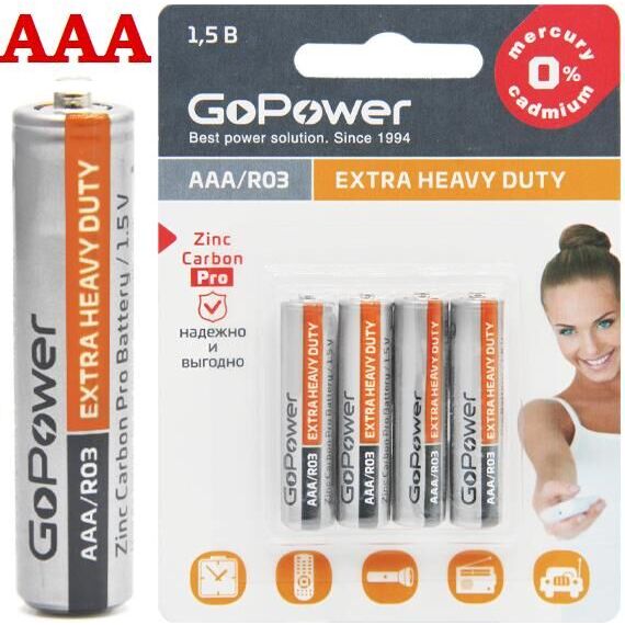 Элементы питания GOPOWER (00-00015595) Extra Heavy Duty AAA/ R03