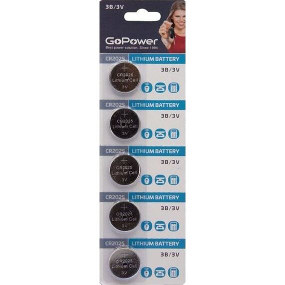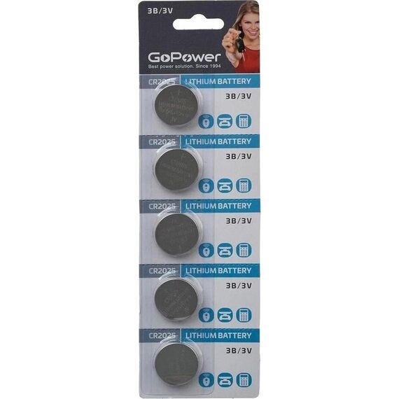 Тип: Дисковые литиевые Типоразмер: CR2025 Номинальное напряжение: 3 В Упаковка: отрывной блистер 5 штук