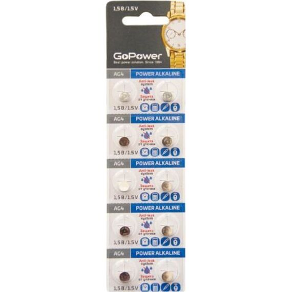Элементы питания GOPOWER (00-00017860) G4/LR626/LR66/377A/177 BL10 Alkaline 1.5V