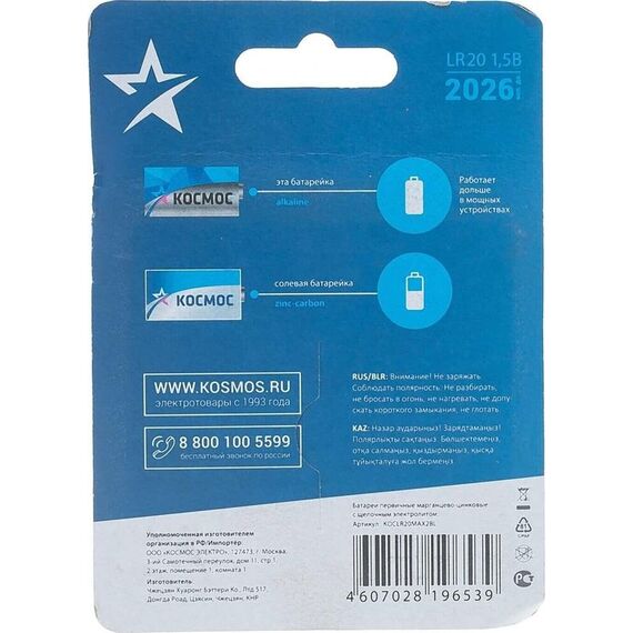 Элементы питания КОСМОС KOCLR20MAX2BL