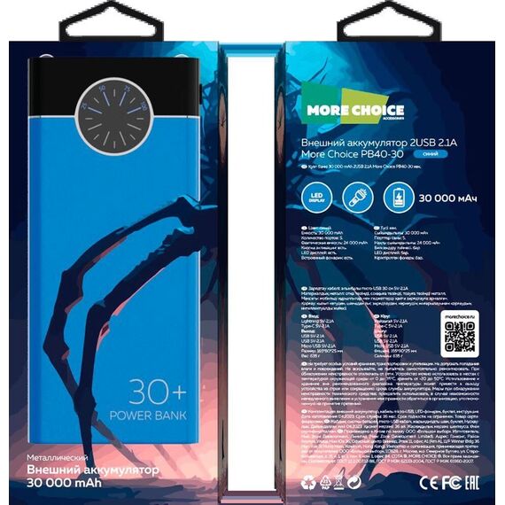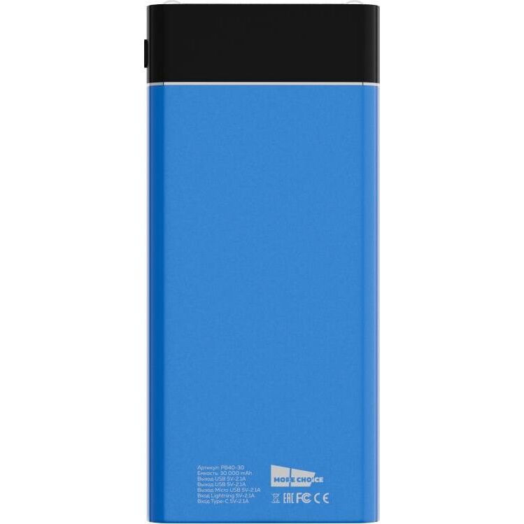 Повербанк MORE CHOICE (4610196406775) PB40-30 30000mAh Blue