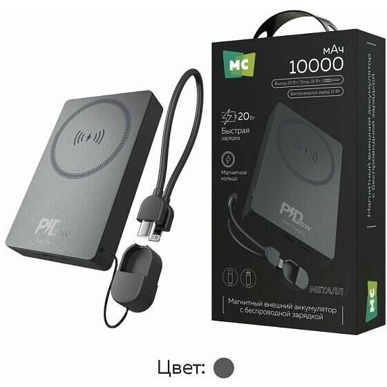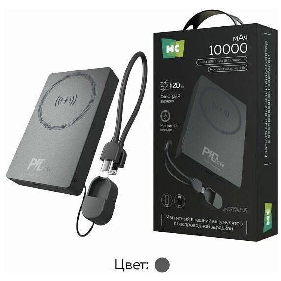 Внешний аккумулятор More Choice — идеальное решение для зарядки гаджетов в любых условиях. Он идеально подходит для поездок, активного отдыха и повседневного использования. Компактный и эргономичный, повербанк легко помещается в сумке или кармане. Оснащен технологией быстрой беспроводной зарядки, что экономит время и обеспечивает удобство в использовании. Имеет несколько выходных портов и кабель для зарядки в комплекте, что позволяет заряжать несколько устройств одновременно.