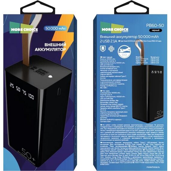 Зарядное устройство MORE CHOICE (4610196405051) PB60-50 50000mAh черный