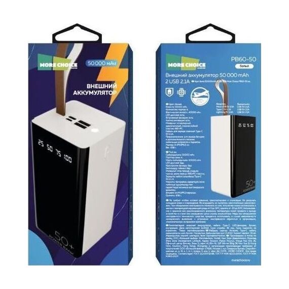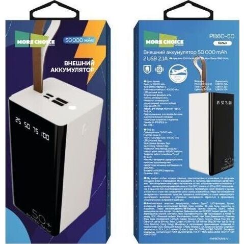 Зарядное устройство MORE CHOICE (4610196405068) PB60-50 50000mAh белый
