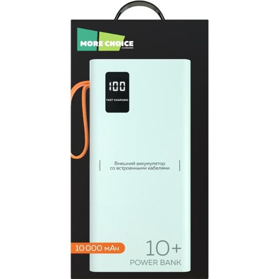 Внешний аккумулятор More Choice PB22-10 идеально подходит для техкто всегда в движении и должны оставаться на связи. Аккумулятор оснащен четырмяпортами : USB, micro, Type-c, lighting. Таук же у данной мделумимеются четыре встроенные кабеля: USB, micro, Type-c, lighting. Внешний аккумулятор имеет несколько систем иентеоектуальной защиты: оот перегрева, перезаряда и скачков напряжения. Аккумулятор выполнен из высококачественных материалов, которые способны выдердать падение и скачки напряжения. Led-экран всегда покажет уровень заряда вашего внешнего аккумулятора.