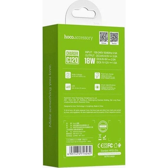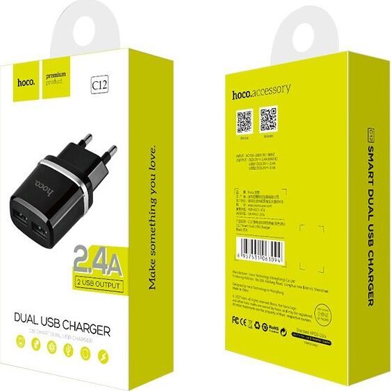 Сетевое зарядное устройство HOCO (6957531063094) C12 2USB 2.4A черный