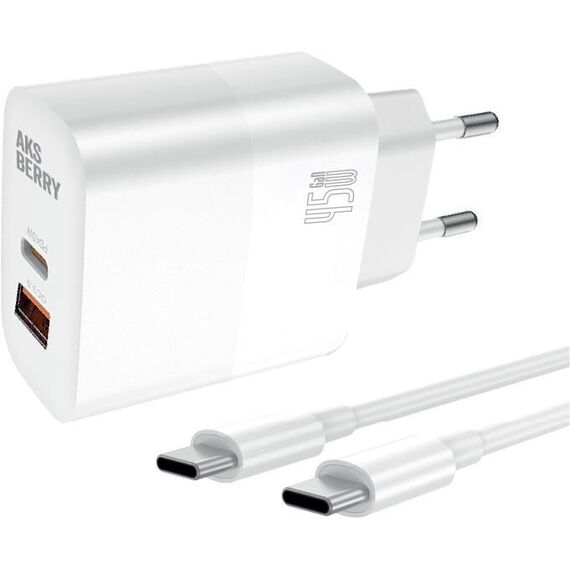Сетевое ЗУ AKSBERRY (6900286930012) T45 45W PD/QC3.0 + кабель type c, белый