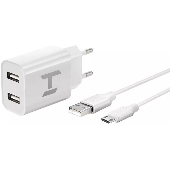 Тип изделия: Сетевое зарядное устройство. Тип подключения: AC 100-240V 50-60Hz. Количество USB портов: 2. Максимальный выходной ток (суммарно): 2.4 A. Предохранитель: да. Кабель в комплекте: microUSB, USB A. Длина кабеля : 1 м. Материал корпуса: пластик. Цвет: белый.