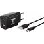 Тип изделия: Сетевое зарядное устройство. Тип подключения: AC 100-240V 50-60Hz. Количество USB портов: 2. Максимальный выходной ток (суммарно): 2.4 A. Предохранитель: да. Кабель в комплекте: USB A, microUSB. Длина кабеля : 1 м. Материал корпуса: пластик. Цвет: черный.