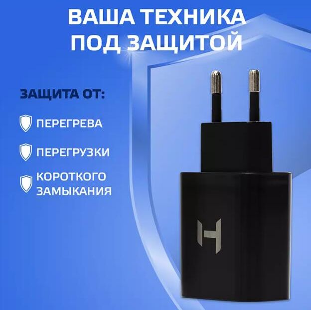 Тип изделия: Сетевое зарядное устройство. Тип подключения: AC 100-240V 50-60Hz. Количество USB портов: 2. Максимальный выходной ток (суммарно): 2.4 A. Предохранитель: да. Кабель в комплекте: USB A, Type C. Длина кабеля : 1 м. Материал корпуса: пластик. Цвет: черный. Гарантия: 12 мес.