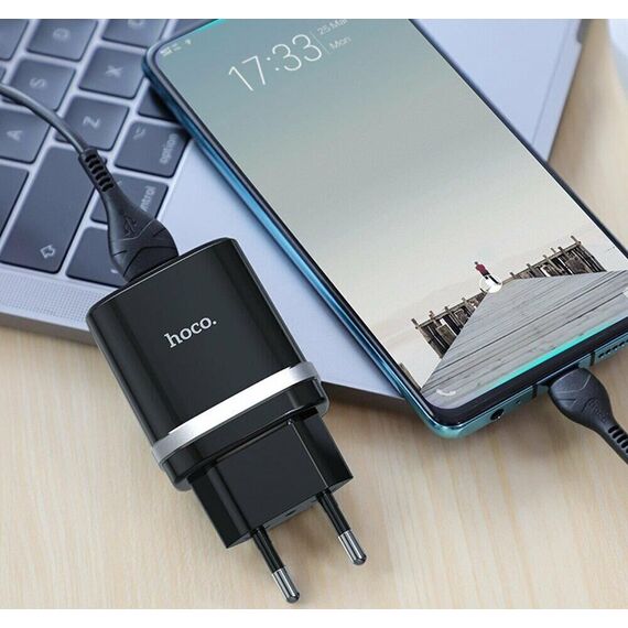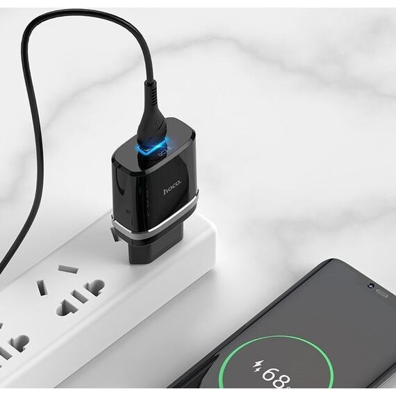 Сетевое ЗУ HOCO (6931474716293) C12Q 1USB 3.0A QC3.0 TYPE-C 1м черный