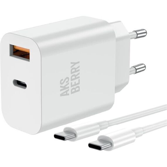 СЗУ AKSBERRY (6900253240015) T43 20W PD + QC3.0 + кабель Type C , белый