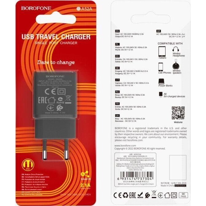 СЗУ BOROFONE (6931474737304) BA52A Gamble 1USB черный