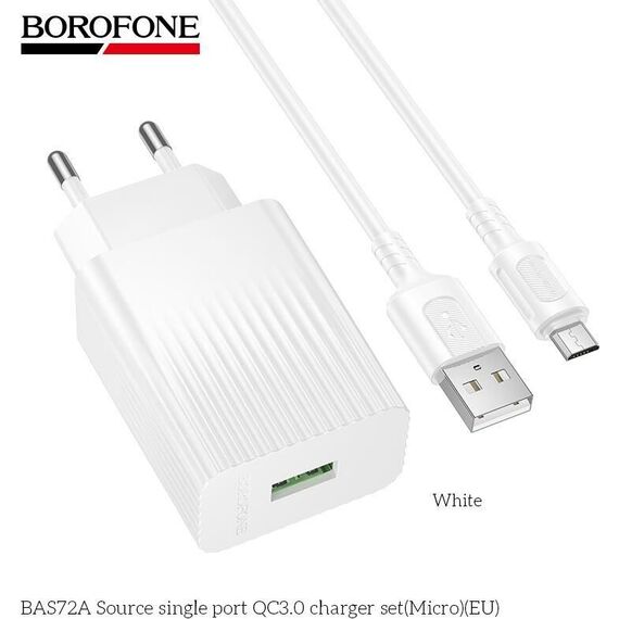 СЗУ BOROFONE (6941991122668) BAS72Am 1USB 3.0A QC3.0 18W для micro USB White