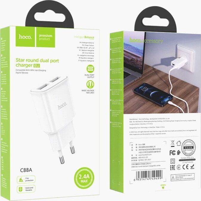 СЗУ HOCO (6931474749499) СЗУ HOCO C88A Star round dual port белый