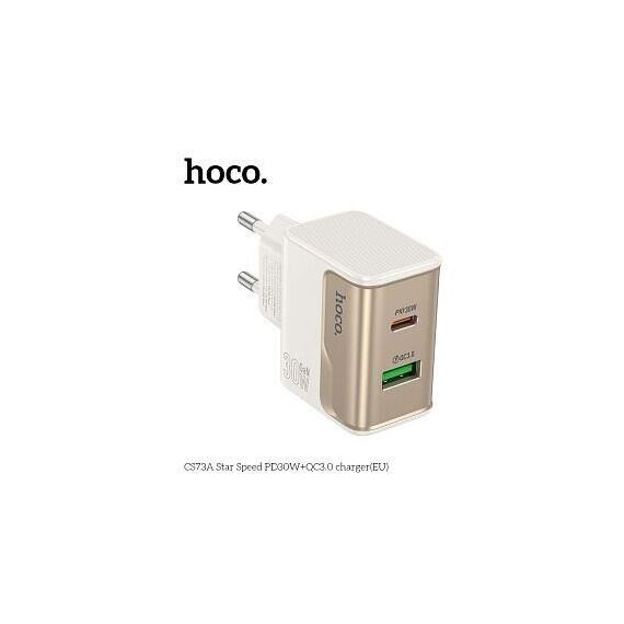 СЗУ HOCO (6942007653794) CS73A 1USB+1Type-C 3.0A PD 30W+QC3.0 White