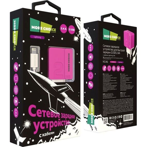 СЗУ MORE CHOICE (4627151191898) NC46i СЗУ 2USB 2.4A для 8-pin - 1м Pink