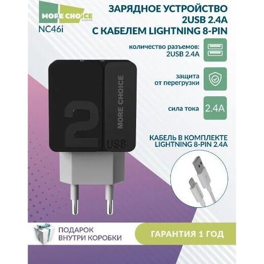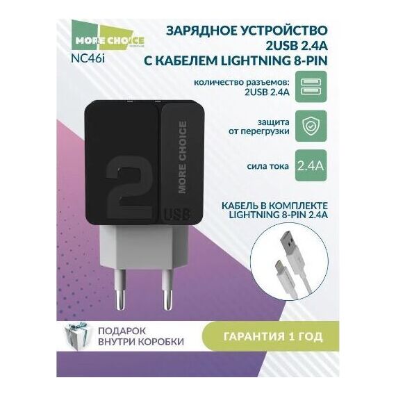 модель NC46I, СЗУ MORE CHOICE (4627151191911) NC46I, NC46I, сетевое зарядное устройство
