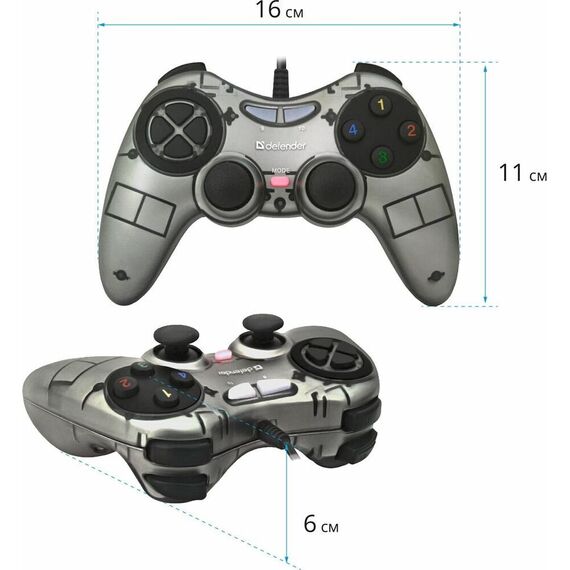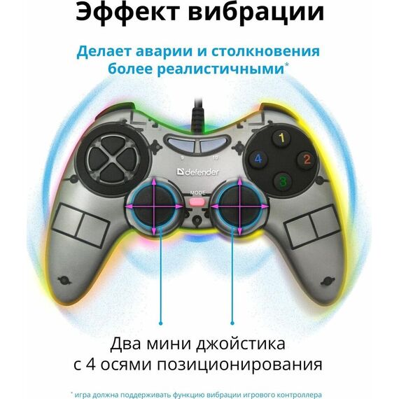 Проводной геймпад с поддержкой Dinput и Xinput игр., 10 кнопок, 4-позиционный переключатель видов, эффект вибрации - 2 встроенных вибромотора, питание от порта USB.