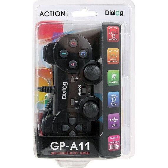 Геймпад DIALOG GP-A11 Action - вибрация, 12 кнопок, USB, черный
