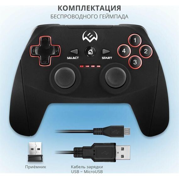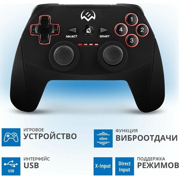 Эргономичный беспроводной геймпад для игр. Функция виброотдачи для повышения реалистичности. Поддержка игр под X-Input (прямая совместимость с геймпадом от Xbox). Soft-touch покрытие для уверенного контроля во время игры. Работа в цифровом и аналоговом режимах. Интерфейс подключения: USB. Технология связи: беспроводная 2.4 Гц. Поддержка: Windows 7/8/10, PS3, Android (возможна несовместимость с отдельными версиями Android и моделями Android-устройств). Оси и джойстики: 4 оси, 8-позиционный джойстик. Количество кнопок: 11 шт.