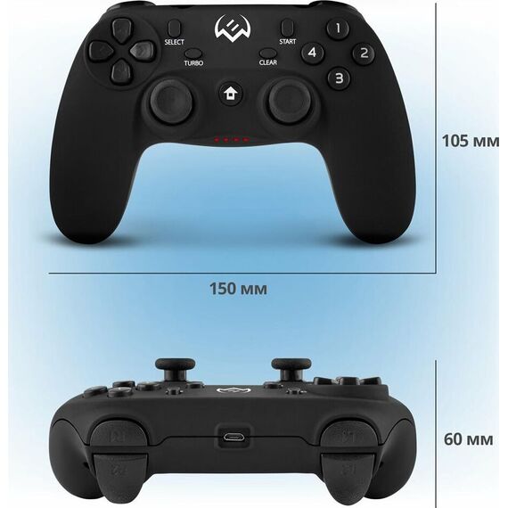 Эргономичный беспроводной геймпад для игр. Поддержка режимов X-Input (прямая совместимость с геймпадом от Xbox) и Direct Input (каждая клавиша настраивается под определенную игру). Функция виброотдачи для повышения реалистичности. Работа в цифровом и аналоговом режимах. Soft-touch покрытие для уверенного контроля во время игры. Интерфейс подключения: USB. Технология связи: беспроводная 2.4 Гц. Поддержка: Windows 7/8/10, PS3, Android (возможна несовместимость с отдельными версиями Android и моделями Android-устройств). Оси и джойстики: 4 оси, 8-позиционный джойстик. Количество кнопок: 13 шт.
