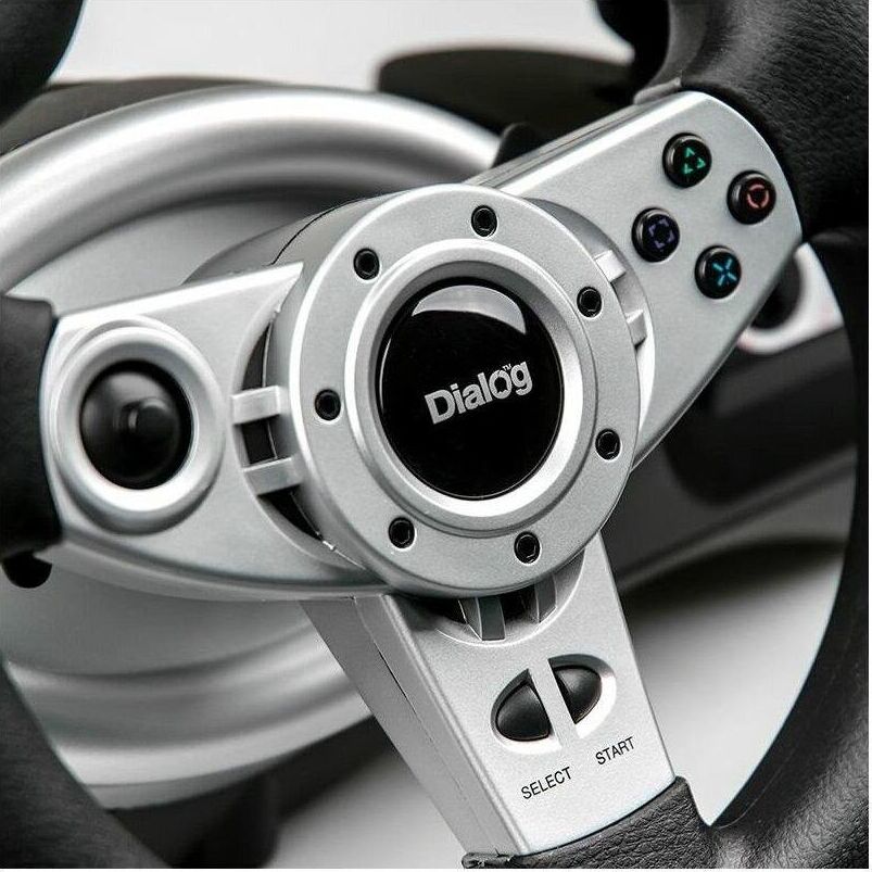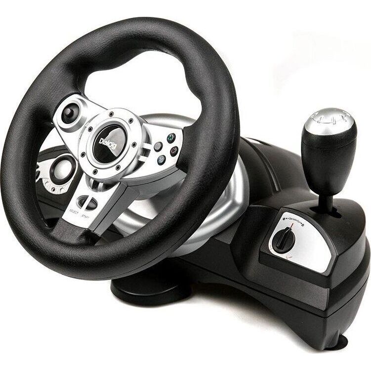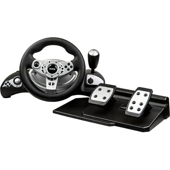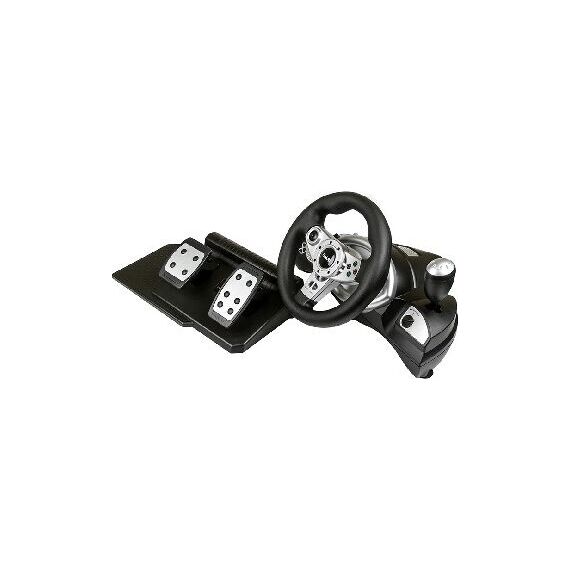 Джойстик-руль, с эффектом вибрации, интерфейс USB, трехпозиционный рычаг переключения скоростей. На рулевом колесе: 2 подрулевых лепестка для переключения скоростей, аналоговый стик, 4-кнопочная крестовина управления, крупная кнопка в центре, 2 кнопки Select и Start, четырехкнопочная крестовина в левой части рулевого блока, регулятор чувствительности в правой части рулевого блока.