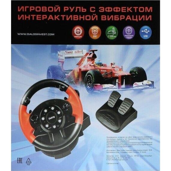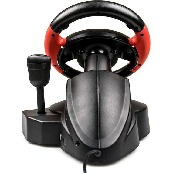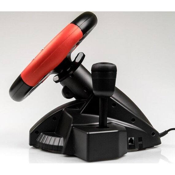 Джойстик-руль, с эффектом вибрации, интерфейс USB, двухпозиционный рычаг переключения скоростей. На рулевом колесе: 2 подрулевых лепестка для переключения скоростей, 8-позиционная навигационная крестовина, 4-кнопочная крестовина управления, 7 кнопок в центре, 2 кнопки в верхней части рулевого колеса.