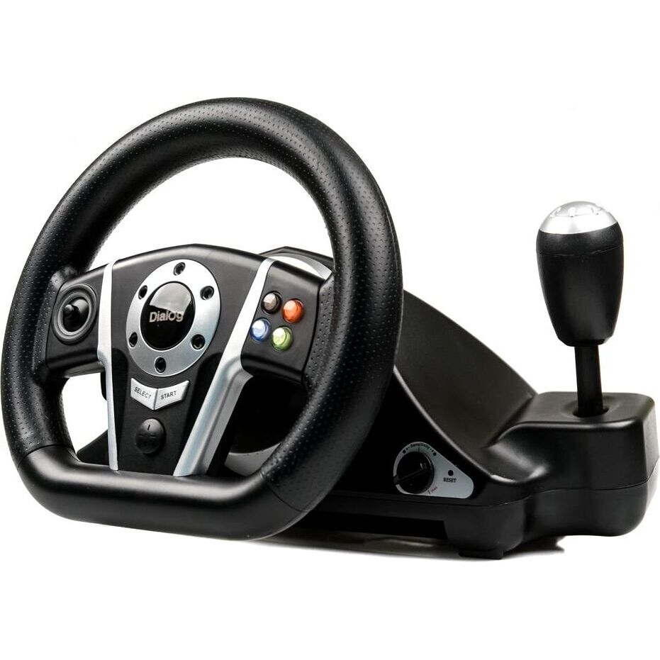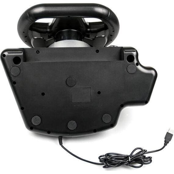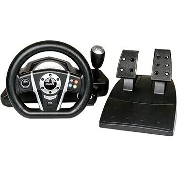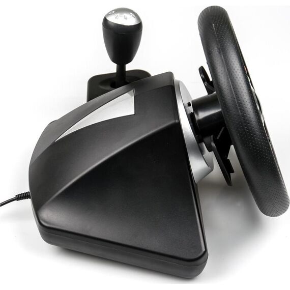 Джойстик-руль, с эффектом вибрации, интерфейс USB, двухпозиционный рычаг переключения скоростей. На рулевом колесе: 2 подрулевых лепестка для переключения скоростей, 8-позиционная навигационная крестовина, 4-кнопочная крестовина управления, крупная кнопка в центре, 2 кнопки Select и Start и четырехкнопочная крестовина в нижней части рулевого колеса.