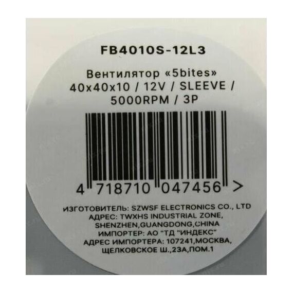 Вентилятор 5bites FB4010S-12L3 40X10 / SLEEVE / 5000RPM / 3P