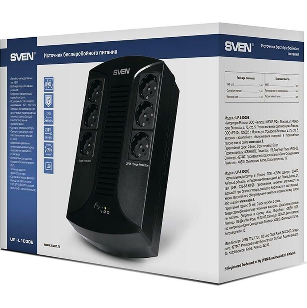 ИБП линейно-интерактивный, встроенный стабилизатор напряжения, мощность полная, ВА - 1000, мощность активная, Вт - 510, уровень входного напряжения, В~175-290±3%/50, уровень выходного напряжения, В~230 (-14/+10%)/50, выходные розетки - 6х CEE7/4 (3х UPS/сетевой фильтр + 3x сетевой фильтр), защита от перегрузки по току, короткого замыкания, напряжение батарей, В12, емкость батареи, А*ч9, размеры изделия, (мм) - 185х280х95.
