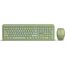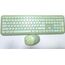 Цвет мыши: зеленыйТип сенсора: ОптическийКоличество кнопок мыши: 3Радиус действия: до 10 мПитание мыши: 1 батарейка ААРазрешение мыши (dpi): 1000Интерфейс подключения: USBЦвет клавиатуры: белыйПитание клавиатуры: 1 батарейка ААА