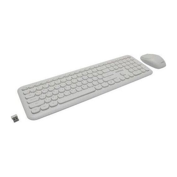 Цвет мыши: белыйТип сенсора: ОптическийКоличество кнопок мыши: 3Радиус действия: до 10 мПитание мыши: 1 батарейка ААРазрешение мыши (dpi): 1000Интерфейс подключения: USBЦвет клавиатуры: белыйПитание клавиатуры: 1 батарейка ААА