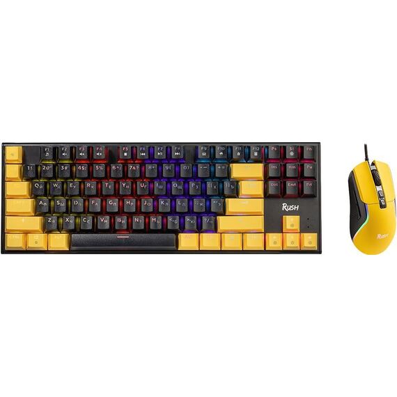 Игровой комплект Smartbuy Rush F16 состоит из механической клавиатуры с красными переключателями и оптической эргономичной мыши. Компактная клавиатура (89 клавиш) с прочным съемным кабелем поддерживает функцию Антигостинг - одновременное нажатие до 26 клавиш. Доступны 17 игровых режимов RGB-подсветки и мультимедийный функционал. Ресурс – 20 млн нажатий. Мышь имеет изменяемое разрешение сенсора в диапазоне 800-7200 DPI, 13 режимов RGB-подсветки, кабель в прочной оплетке и ресурс 3 млн нажатий.