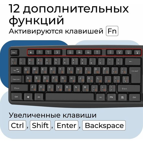 Тип подключения: проводной Интерфейс подключения: USB Длина кабеля: 1.8 ±5% м Резиновые ножки: есть Количество дополнительных клавиш (функций): 12 (+FN) Цвет языка основной раскладки: оранжевый Тип клавиатуры: мембранная Цвет: чёрный ROHS / CE: Нет Масса индивидуальной упаковки: 0.52 кг Масса без упаковки: 0.43 кг Размеры без упаковки: 12.0 x 2.3 x 43.0 см Системные требования для ПК: Windows 2000/XP/Vista/7/8/10/11 Mac OS X10 Гарантийный срок: 6 месяцев