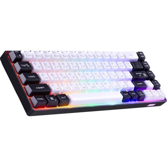 Ультракомпактная игровая клавиатура с кейкапами двух цветов и регулируемой радужной подсветкой. Основные особенности модели: блокировка клавиши Win, обмен функциями между клавишами WASD и стрелками, а также поддержка Anti Ghost для 19 клавиш.