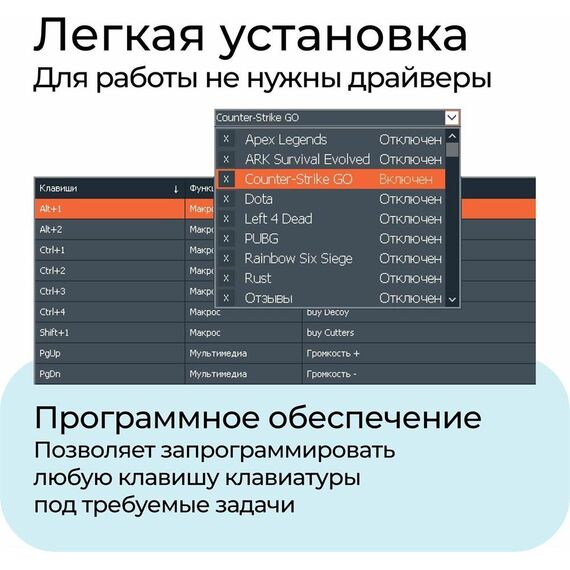 Клавиатура проводная, интерфейс USB, количество клавиш - 104, системные требования для ПК Windows 2000/XP/Vista/7/8/10, Mac OS X10,