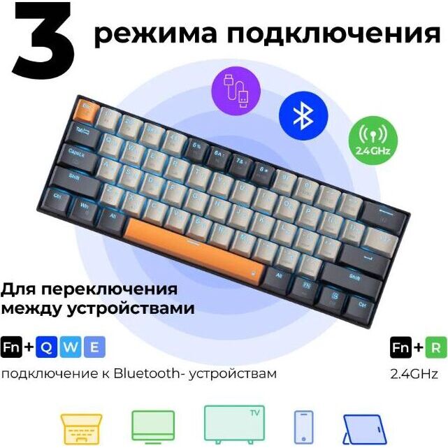 "Ноутбучные" клавиши нет; Вес (грамм) -; Встроенный USB-хаб Нет; Механическая Да; Модель 71554; Описание расцветки -; Производитель Redragon; Серия -; Среда передачи данных Проводная/беспроводная; Тип оборудования Клавиатура; Цвет клавиш клавиатуры -; Частота 2.4 ГГц;